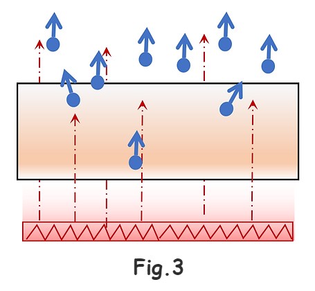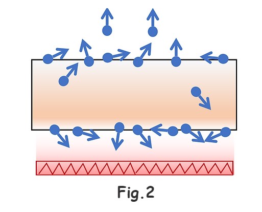 Fig1. フィラメントは空気中の水分を吸収し、内部水分子の含有量が増加します。 Fig2. フィラメント乾燥機で加熱されると水分子とポリマー鎖の間の接続が壊れ、内部水分子はフィラメントの表面に移動します。